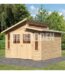 Bureau de jardin en bois massif avec terrasse 18,6m² – madriers 40mm traités et teintés marron Gardy Shelter