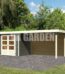 Abri de jardin en bois massif gris terre 4,62m² Askola 2 avec appentis 280cm et paroi arrière – Karibu