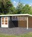 Abri de jardin en bois massif anthracite 7,04m² Bastrup 4 avec appentis 300cm et paroi arrière – Karibu