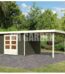 Abri de jardin en bois massif gris terre 9,24m² Askola 6 avec appentis 280cm – Karibu
