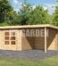 Chalet moderne Oregon 9,6m² + extension 300cm en bois traité 28mm avec porte double vitrée – Gardenas