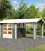 Abri de jardin en bois massif gris terre 4,62m² Askola 2 avec appentis 280cm et paroi arrière – Karibu