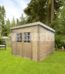 Abri de jardin toit plat 12m² PENTY - madriers 28mm traité - tuiles métalliques - Gardy Shelter