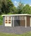 Abri de jardin en bois massif gris terre 6,55m² Askola 4 avec appentis 240cm et paroi arrière - Karibu