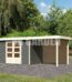 Abri de jardin en bois massif gris terre 5,95m² Askola 3,5 avec appentis 240cm et paroi arrière - Karibu
