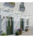 Pergola bioclimatique autoportante en alu vert pâle 3x4m + store blanc 4m Ombrea VS