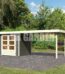 Abri de jardin en bois massif gris terre 4,62m² Askola 2 avec appentis 280cm – Karibu