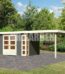 Abri toit plat 9,55m² bois massif gris terre 40mm Northeim 3 avec appentis 330cm et paroi arrière – Karibu