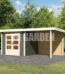 Abri toit plat 9,55m² bois massif gris terre 40mm Northeim 3 avec appentis 330cm et paroi arrière – Karibu
