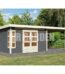 Abri de jardin en bois massif gris terre 8,88m² Kastorf 7 avec appentis 260cm et paroi arrière – Karibu