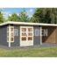 Abri de jardin en bois massif gris terre 8,88m² Kastorf 7 avec appentis 260cm et paroi arrière et latérale – Karibu