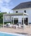 Pergola bioclimatique autoportante en alu gris perle 3x4m + store blanc 4m Ombrea VS