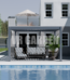 Pergola bioclimatique adossée en alu blanc 3x3m + store 3m blanc Ombrea VS